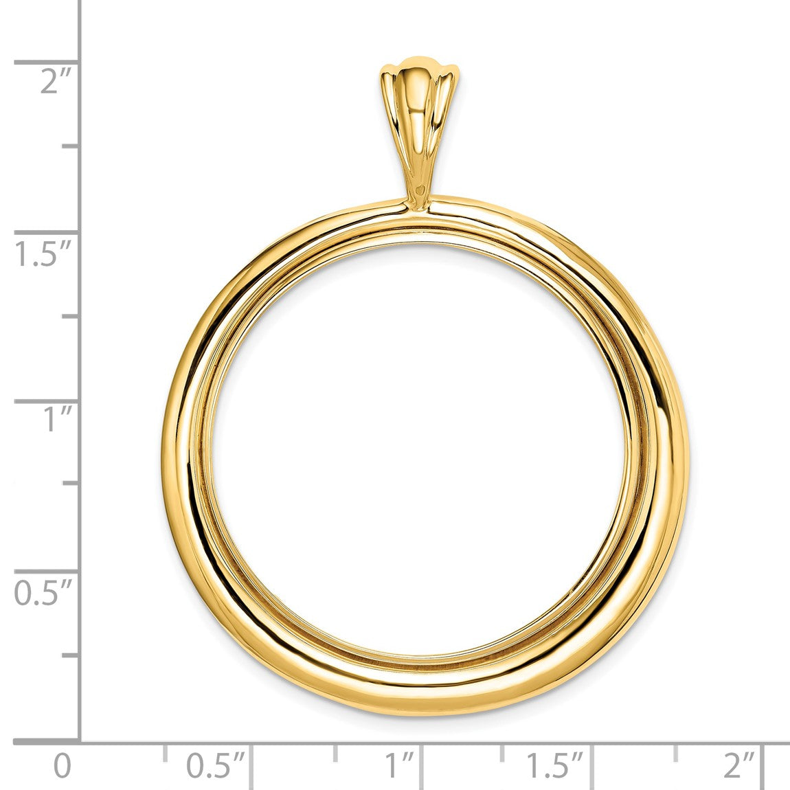 14k Yellow Gold Polished 32.7mm Concentric Circle Prong Coin Bezel Pendant - Fits 1 oz American Eagle, 1 oz Cat, and 1 oz Krugerrand