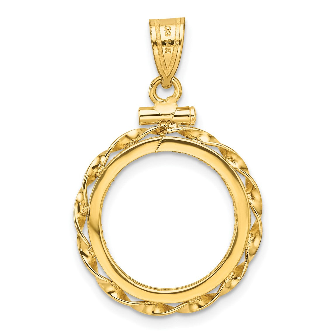 14k Yellow Gold Polished Hand Twisted Ribbon and Diamond-cut 16.0mm x 1.35mm Screw Top Coin Bezel Pendant - Fits Maple Leaf