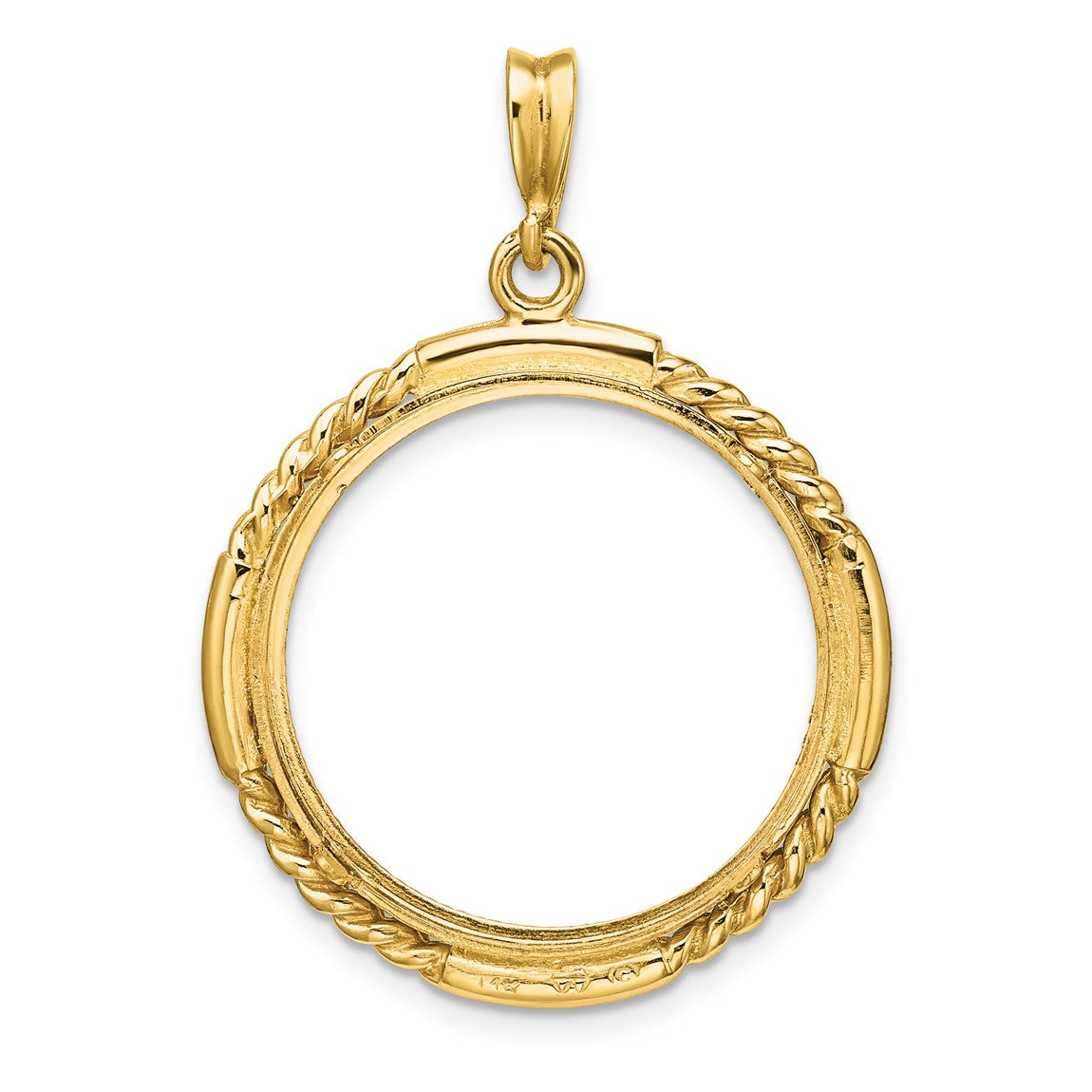 14k Yellow Gold Polished Quadruple Twist and Diamond-cut 22.0mm Prong Coin Bezel Pendant - Fits 1/4 oz American Eagle and Other Coins