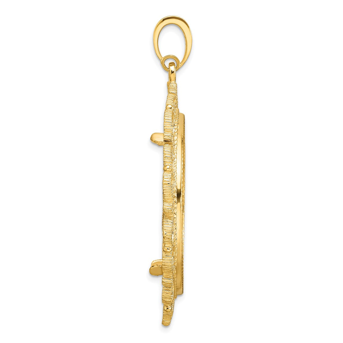 14k Yellow Gold Polished Textured and Diamond-cut Victorian-Style 32.7mm Prong Coin Bezel Pendant - Fits 1 oz American Eagle, 1 oz Cat, and 1 oz Krugerrand