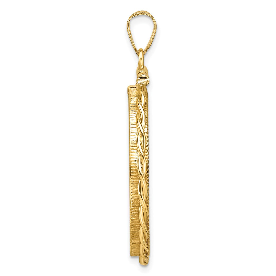 14k Yellow Gold Polished Twisted Wire and Diamond-cut 27.0mm x 2.35mm Screw Top Coin Bezel Pendant - Fits 1/2 oz American Eagle, US $10 Liberty, and Other Coins