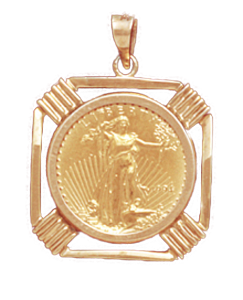 14K Yellow Gold RIBBED WIRE BEZEL Pendant 1/10 American Eagle, 1/10 Krugerrand 16.5 mm