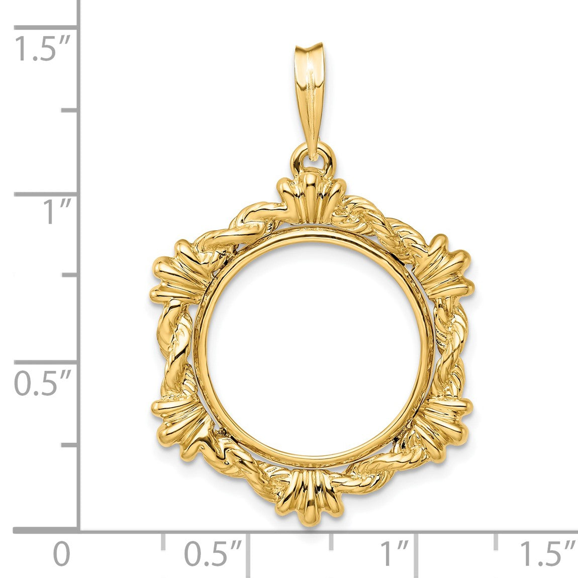 14k Yellow Gold Rope w/ Shell Motif 17.8mm Prong Coin Bezel Pendant - Fits US $2.50 Liberty and Other Coins