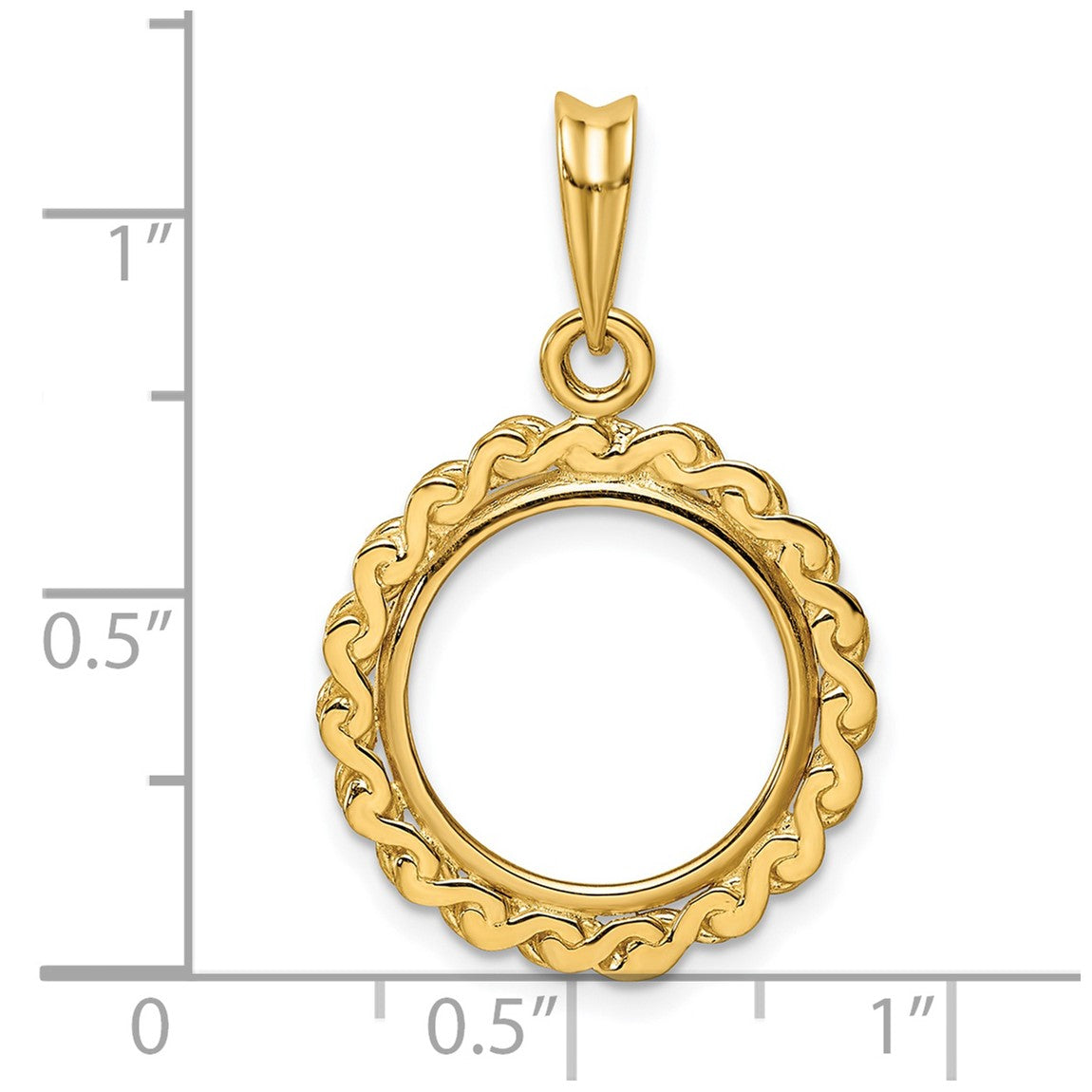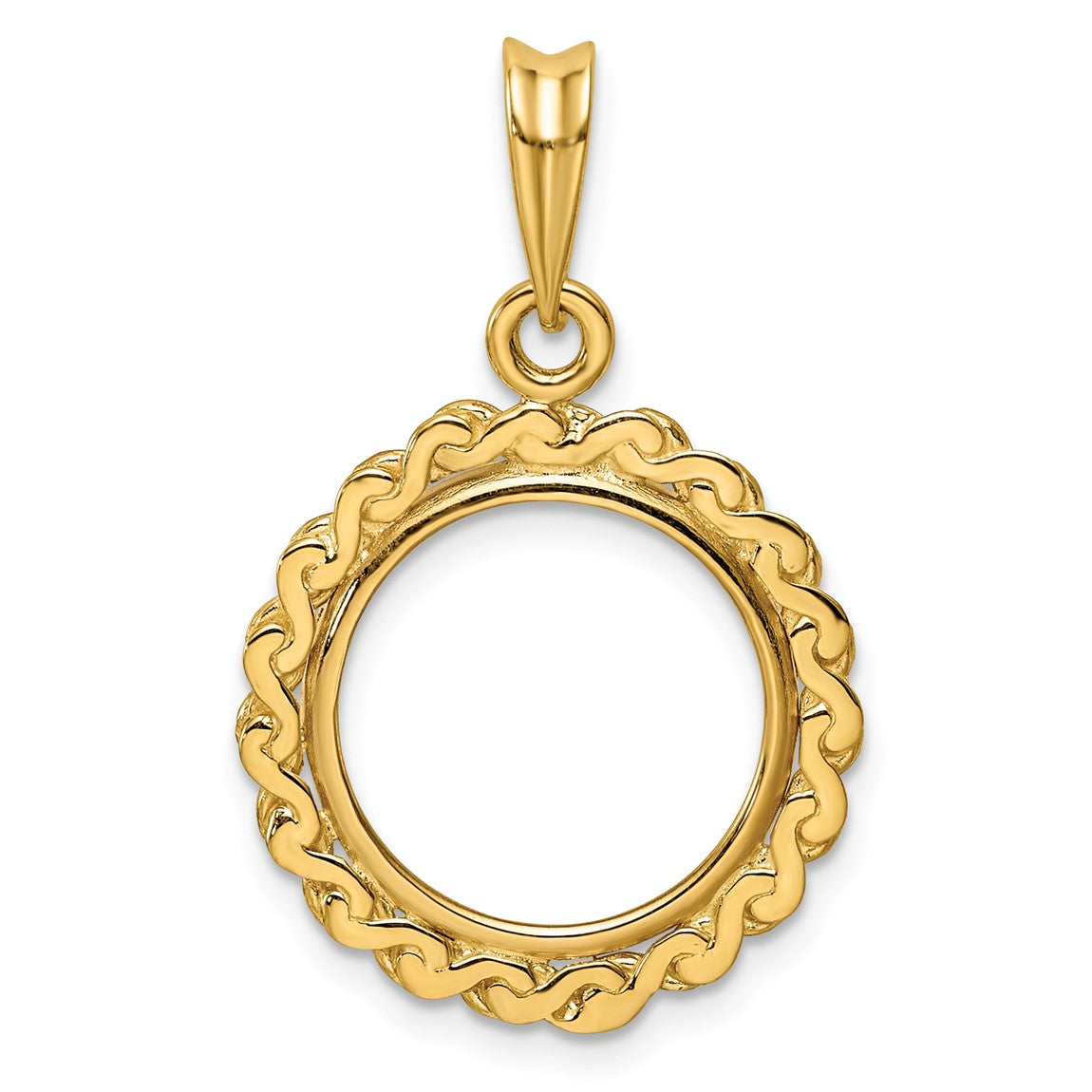 14k Yellow Gold S Chain 14mm Prong Coin Bezel Pendant - Fits 1/20 oz Maple Leaf and Other Coins