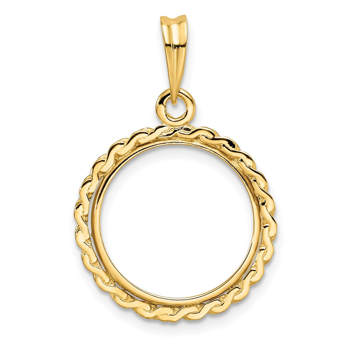 14k Yellow Gold S Chain 15.5mm Prong Coin Bezel Pendant - Fits 2.5 Pesos