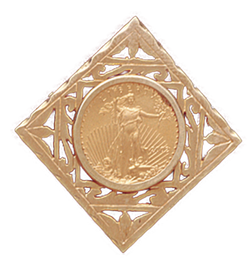 14K Yellow Gold SQ. FILIGREE  BEZEL  Pendant (Coin not included). Will hold a 16.5 mm coin.