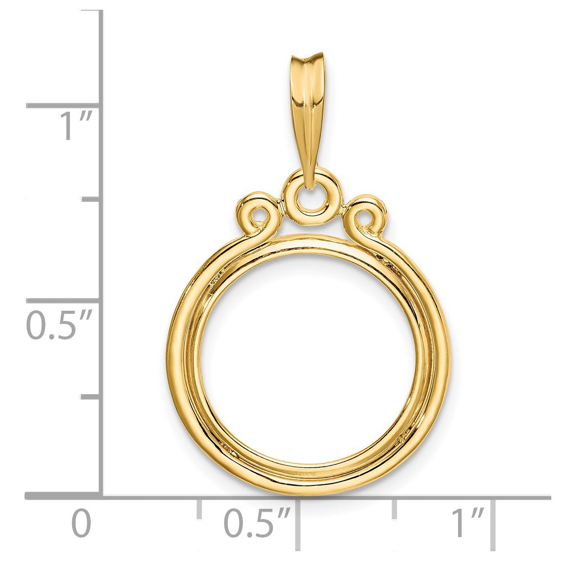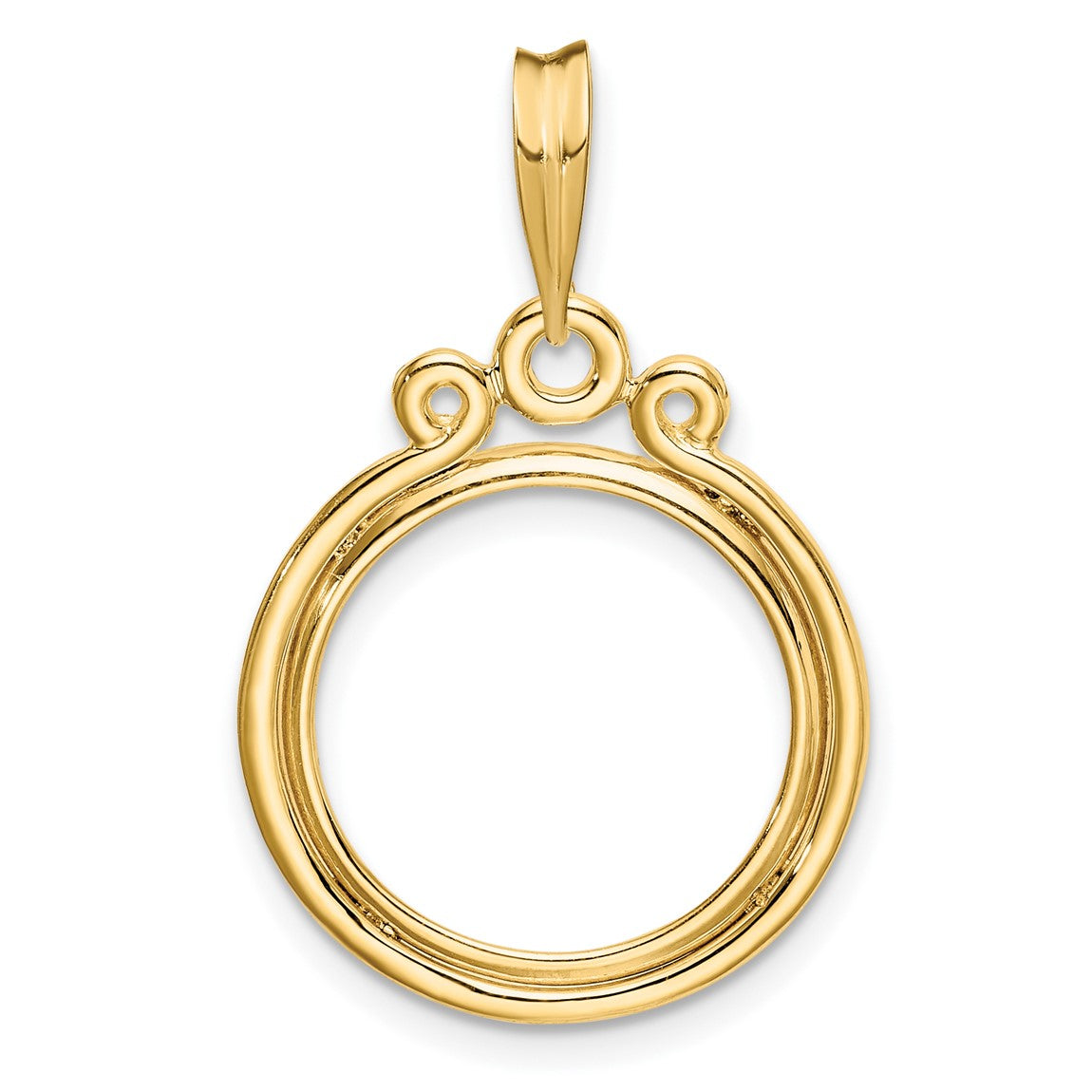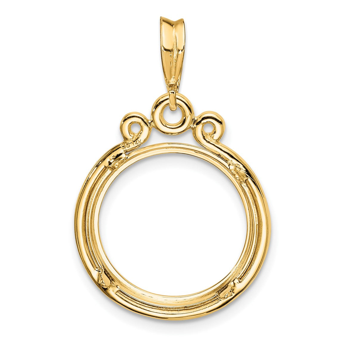 14k Yellow Gold Triple Circle Top 15mm Prong Coin Bezel Pendant - Fits US $1 Type 2