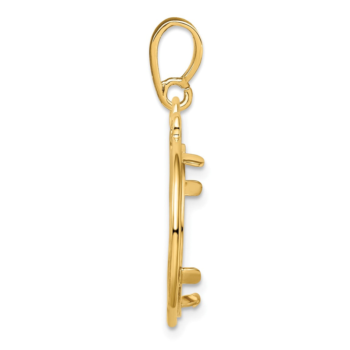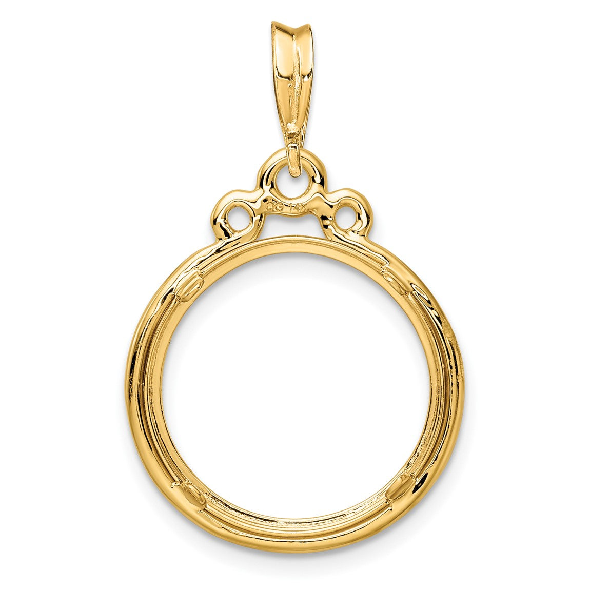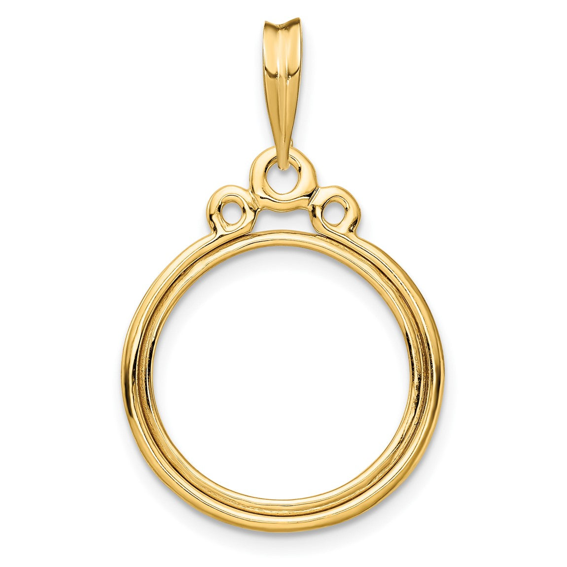 14k Yellow Gold Triple Circle Top 16.5mm Prong Coin Bezel Pendant - Fits 1/10 oz American Eagle and 1/10 oz Krugerrand
