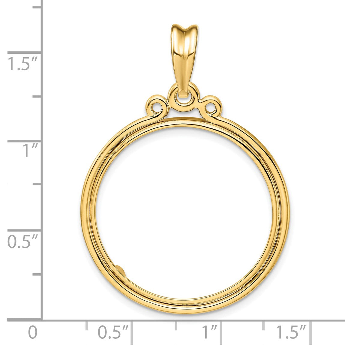 14k Yellow Gold Triple Circle Top 27mm Prong Coin Bezel Pendant - Fits 1/2 oz American Eagle, US $10 Liberty, and Other Coins