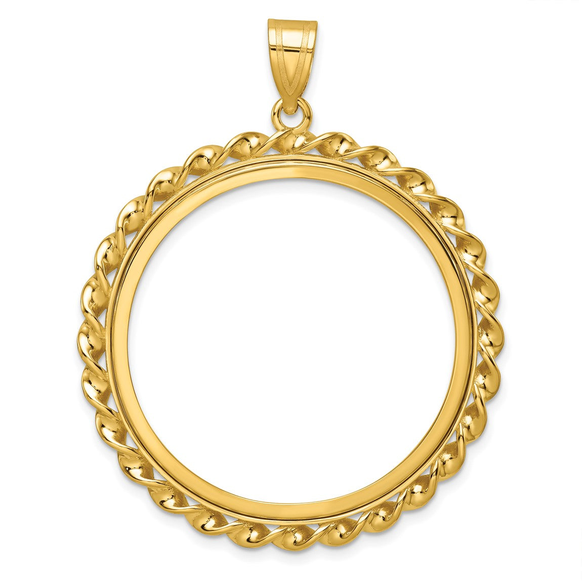 14k Yellow Gold Twisted Wire 32.7mm Prong Coin Bezel Pendant - Fits 1 oz American Eagle, 1 oz Cat, and 1 oz Krugerrand