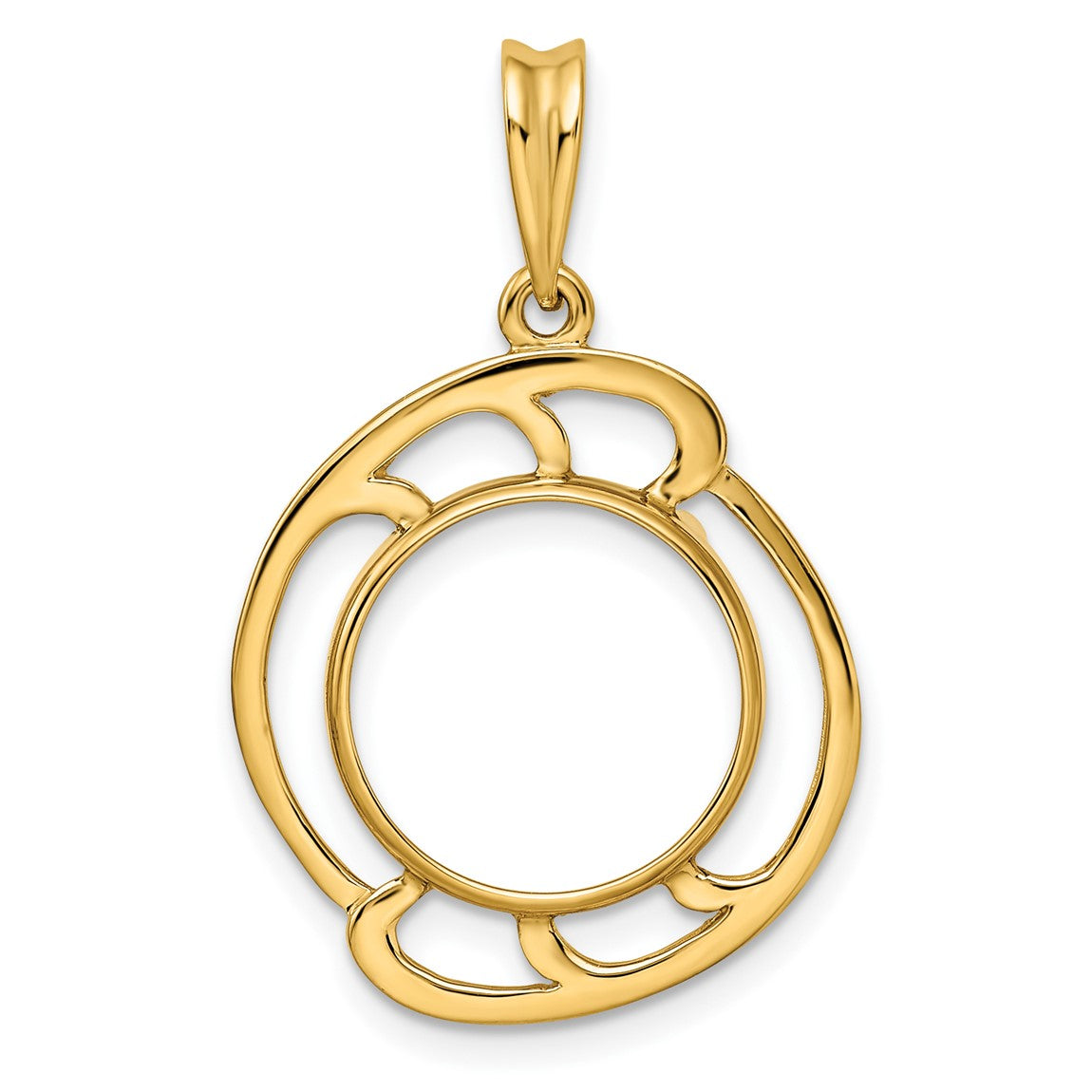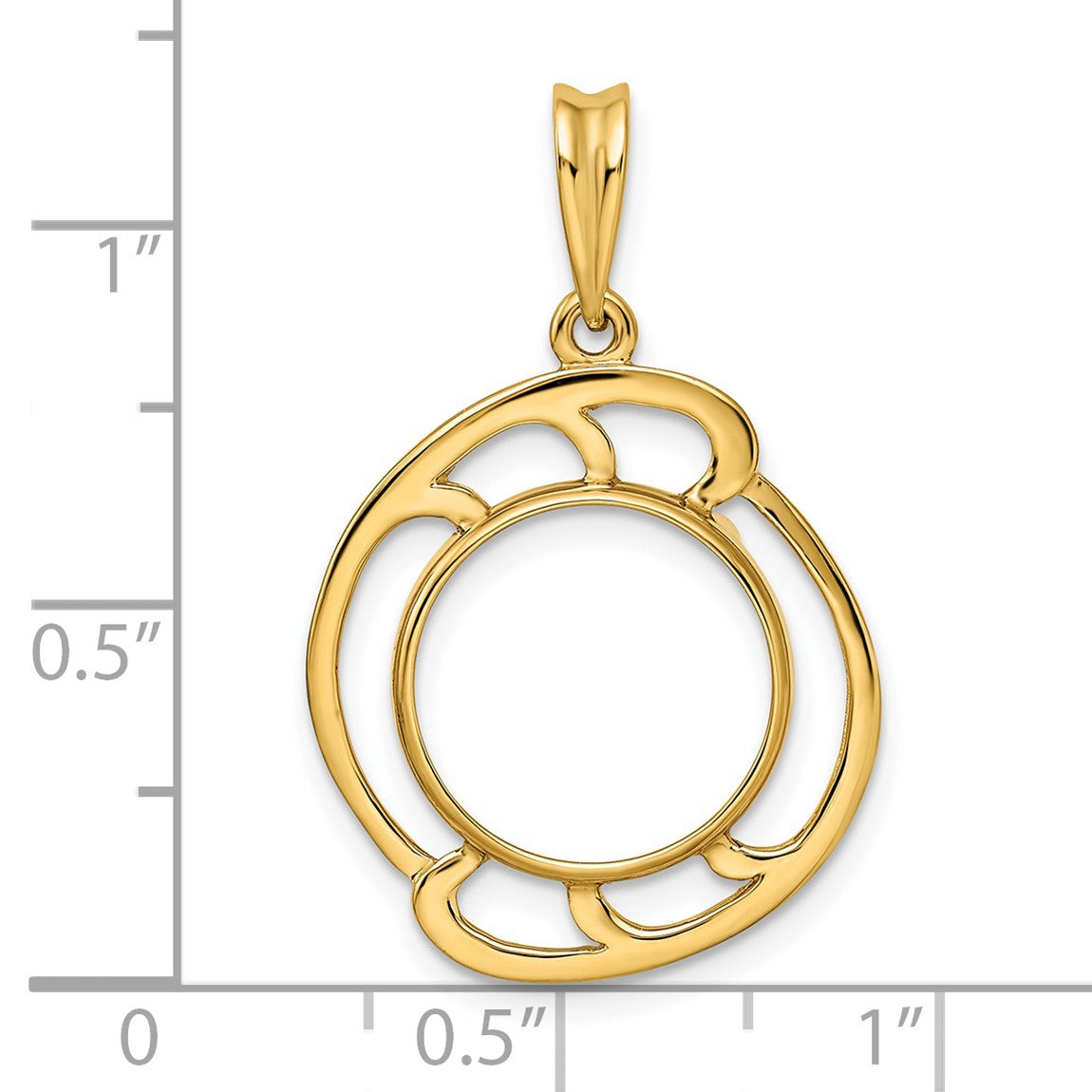 14k Yellow Gold Wave Design 13mm Prong Coin Bezel Pendant - Fits 2 Pesos and US $1
