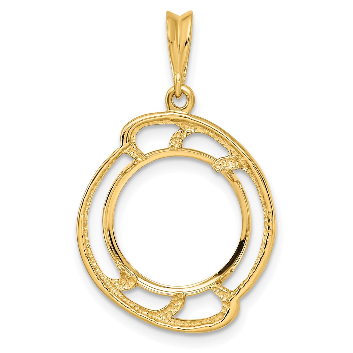 14k Yellow Gold Wave Design 14mm Prong Coin Bezel Pendant - Fits 1/20 oz Maple Leaf and Other Coins