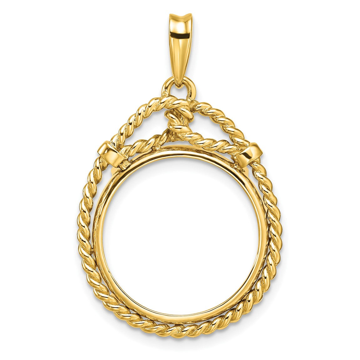14k Yellow Gold Western Rope 17.8mm Prong Coin Bezel Pendant - Fits US $2.50 Liberty and Other Coins