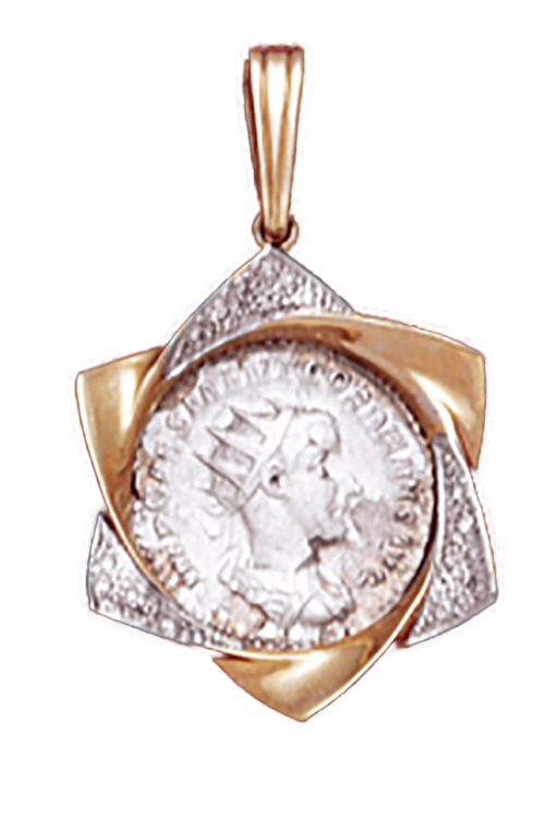 14K  Gold DIAMOND STAR Pendant With Silver Roman Coin