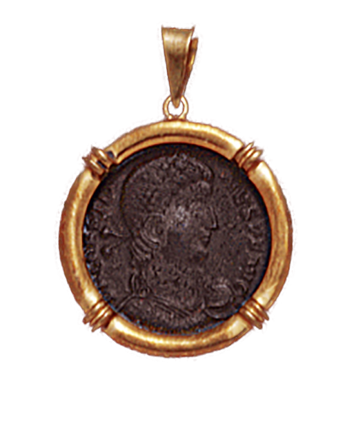14K  Gold NAUTICAL Pendant With Bronze Roman Coin
