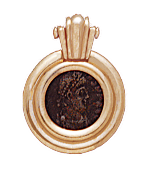 14K Gold RUBY ACCENT SLIDE PENDANT With Bronze Roman Coin