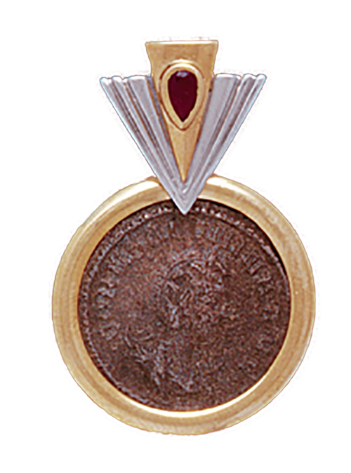 14K Gold RUBY V-SLIDE SILVER Pendant With Roman Coin