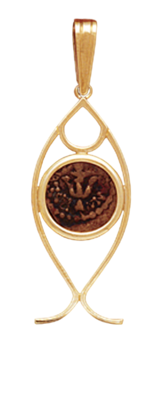 14K Yellow Gold Jesus Fish Pendant With A Widow Mite Coin