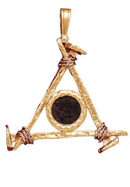14K Yellow Gold Jesus Nail Pendant With A Widow Mite Coin