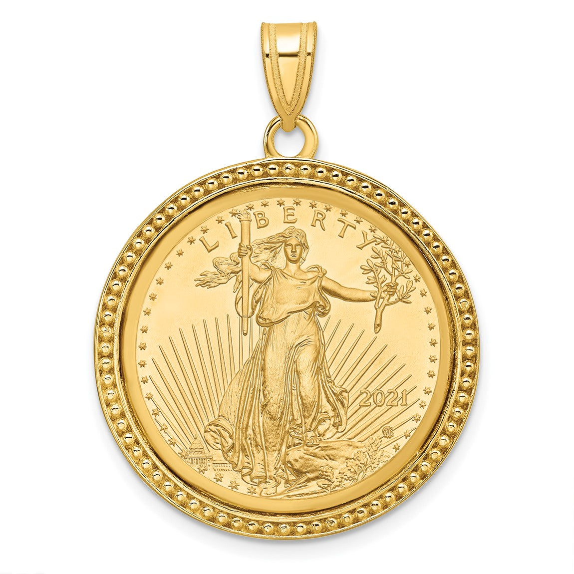 14k Yellow Gold Polished and Beaded Mounted 1/4oz American Eagle Coin Bezel Pendant