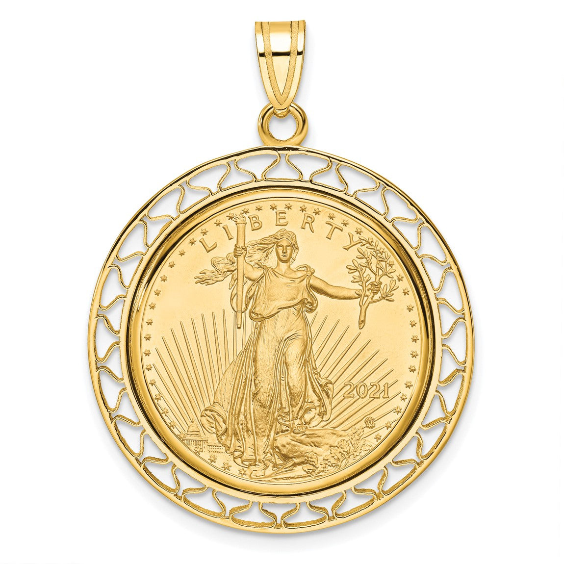 14k Yellow Gold Polished Fancy Wire Mounted 1/4oz American Eagle Prong Coin Bezel Pendant