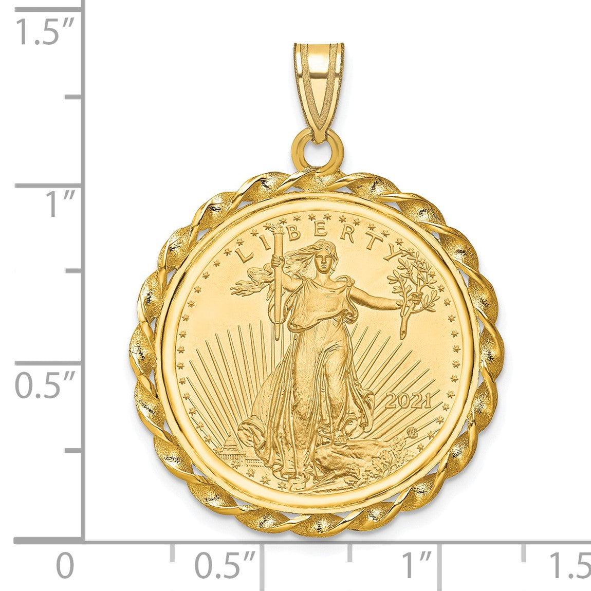 14k Yellow Gold Polished Wide Twisted Wire Mounted 1/4oz American Eagle Prong Coin Bezel Pendant