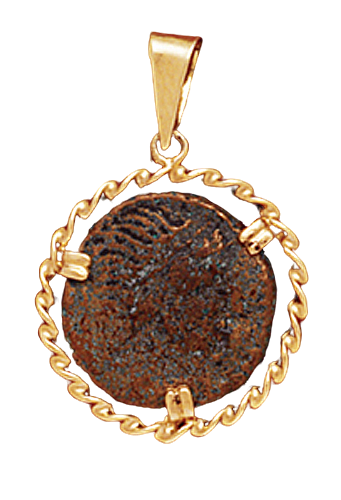 14K Yellow Gold Twist Wire Pendant With A Roman Bronze Coin