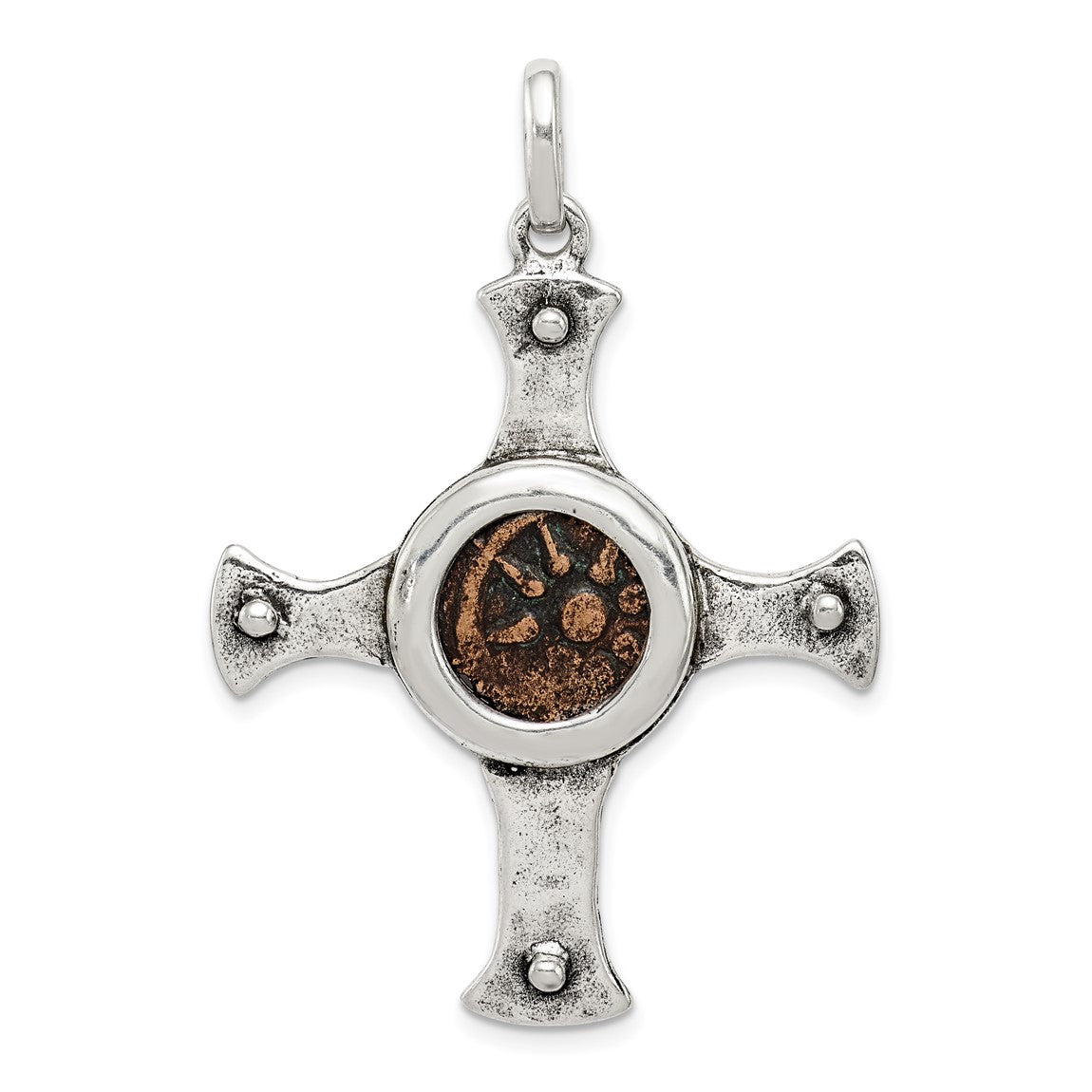 Sterling Silver & Bronze Antiqued Widows Mite Coin Cross Pendant