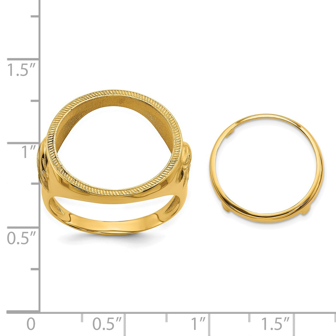 10k Yellow Gold Mens Polished and Textured with Eagle Sides 16.5mm Coin Bezel Ring - Fits 1/10 oz American Eagle and 1/10 oz Krugerrand