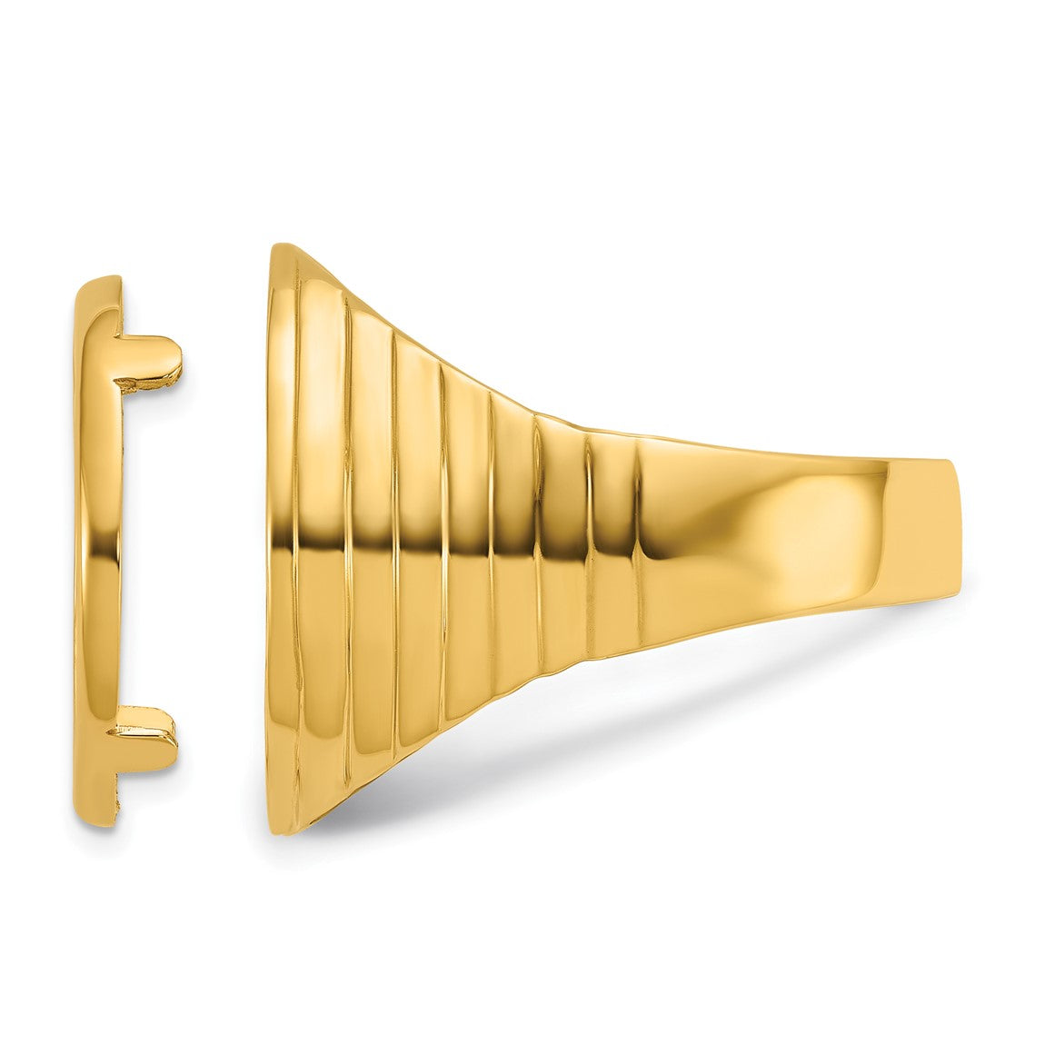 10k Yellow Gold Mens Polished Ribbed Edge 16.5mm Coin Bezel Ring - Fits 1/10 oz American Eagle and 1/10 oz Krugerrand