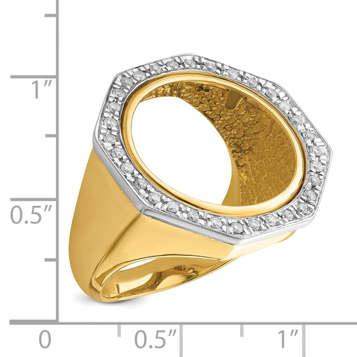 14k Men's Two-tone Polished A Diamond Octagonal 17.8 mm Coin Bezel Ring Size 10 - Fits US $2.50 Liberty and Other Coins
