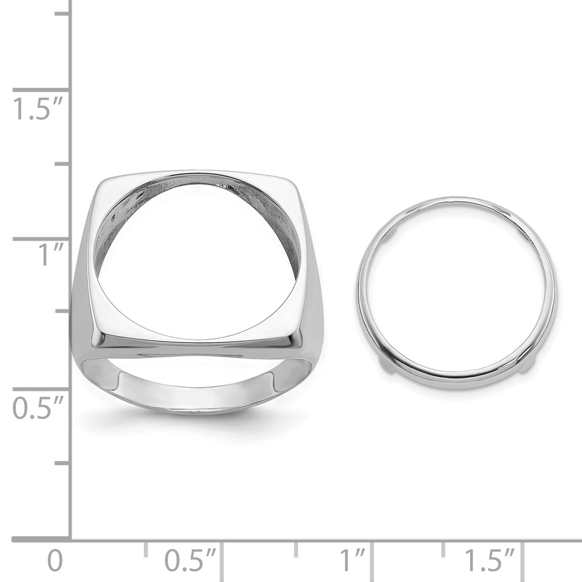 14k White Gold Mens Polished Square Shaped 16.5mm Coin Bezel Ring - Fits 1/10 oz American Eagle and 1/10 oz Krugerrand