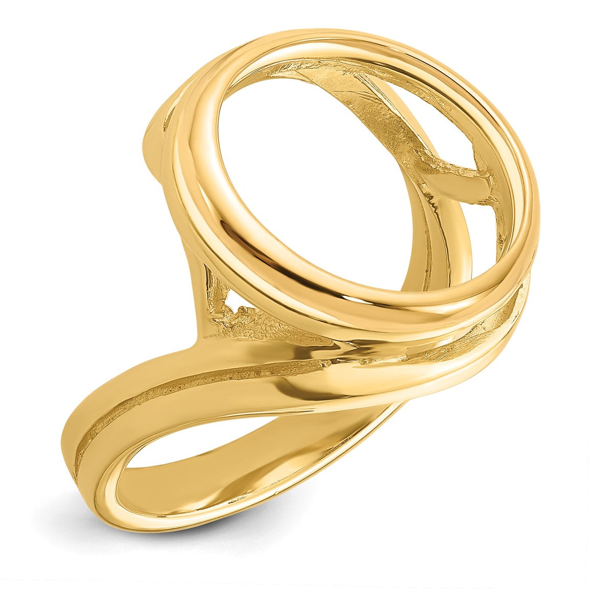 14k Yellow Gold Ladies Double Twisted Wire 15mm Prong Coin Bezel Ring - Fits US $1 Type 2