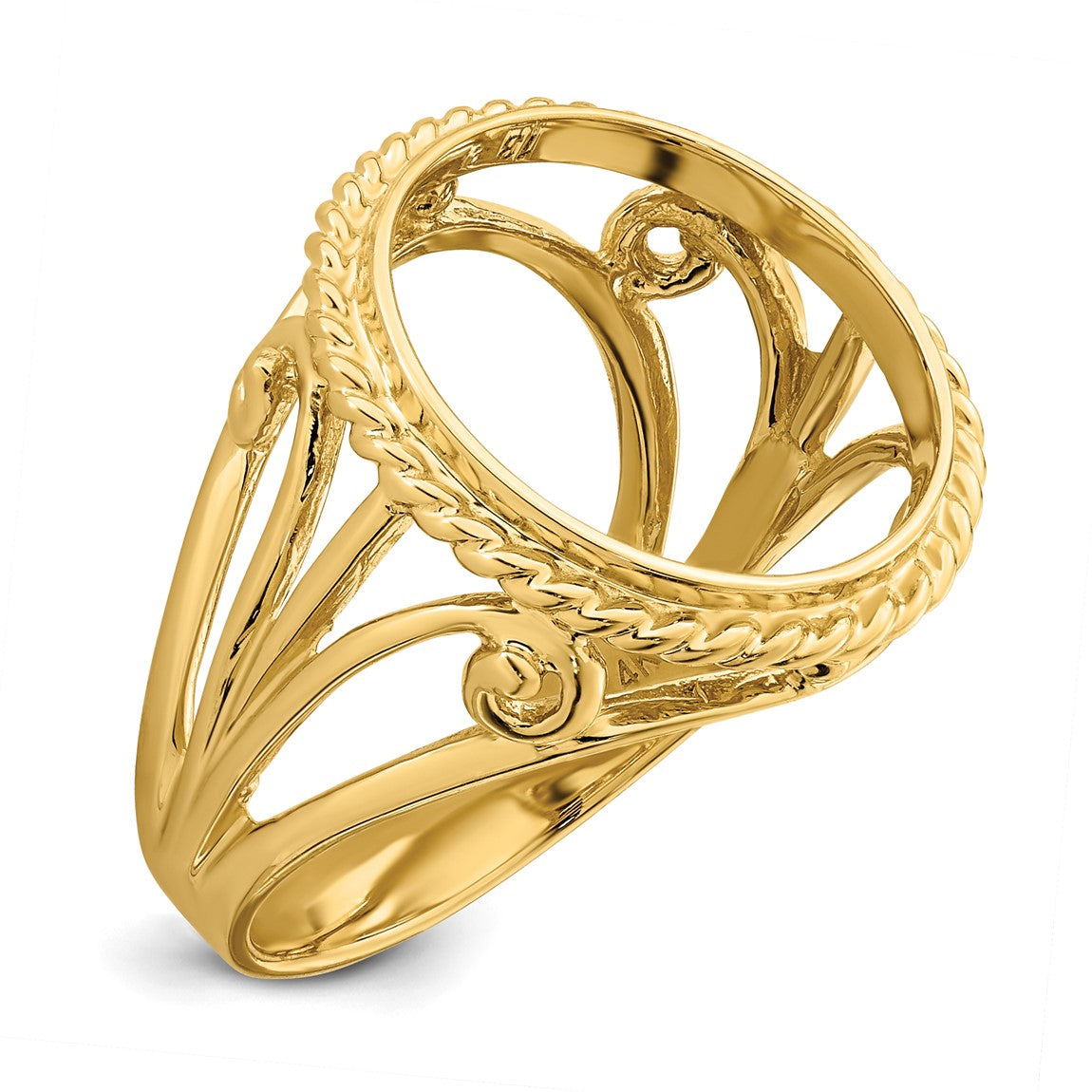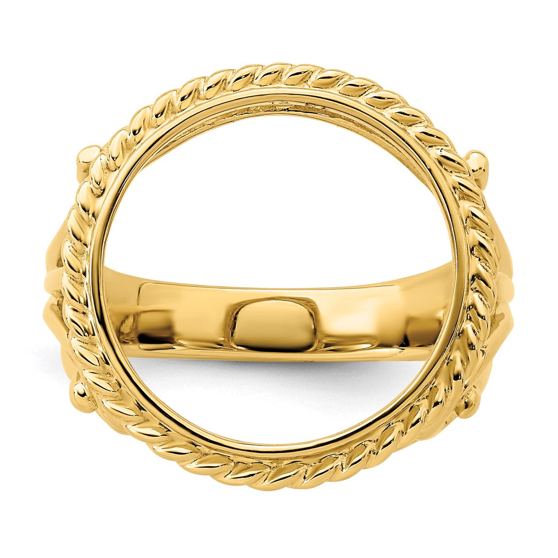 14k Yellow Gold Ladies Polished Twisted Wire Filigree 14.0mm Coin Bezel Ring - Fits 1/20 oz Maple Leaf and Other Coins