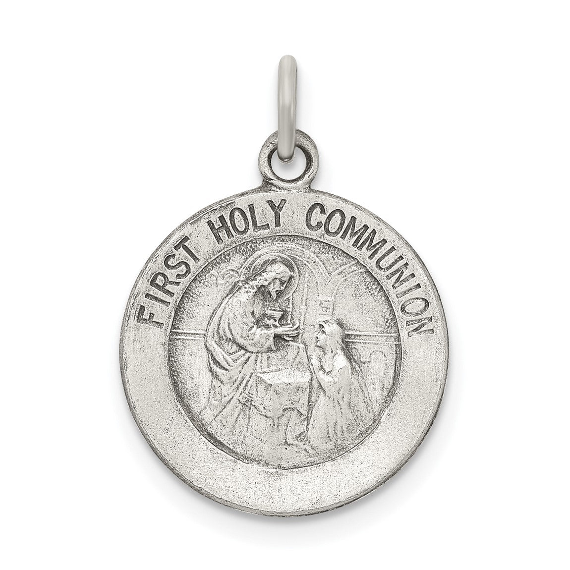 Sterling Silver Antiqued First Holy Communion Medal Pendant QC5823