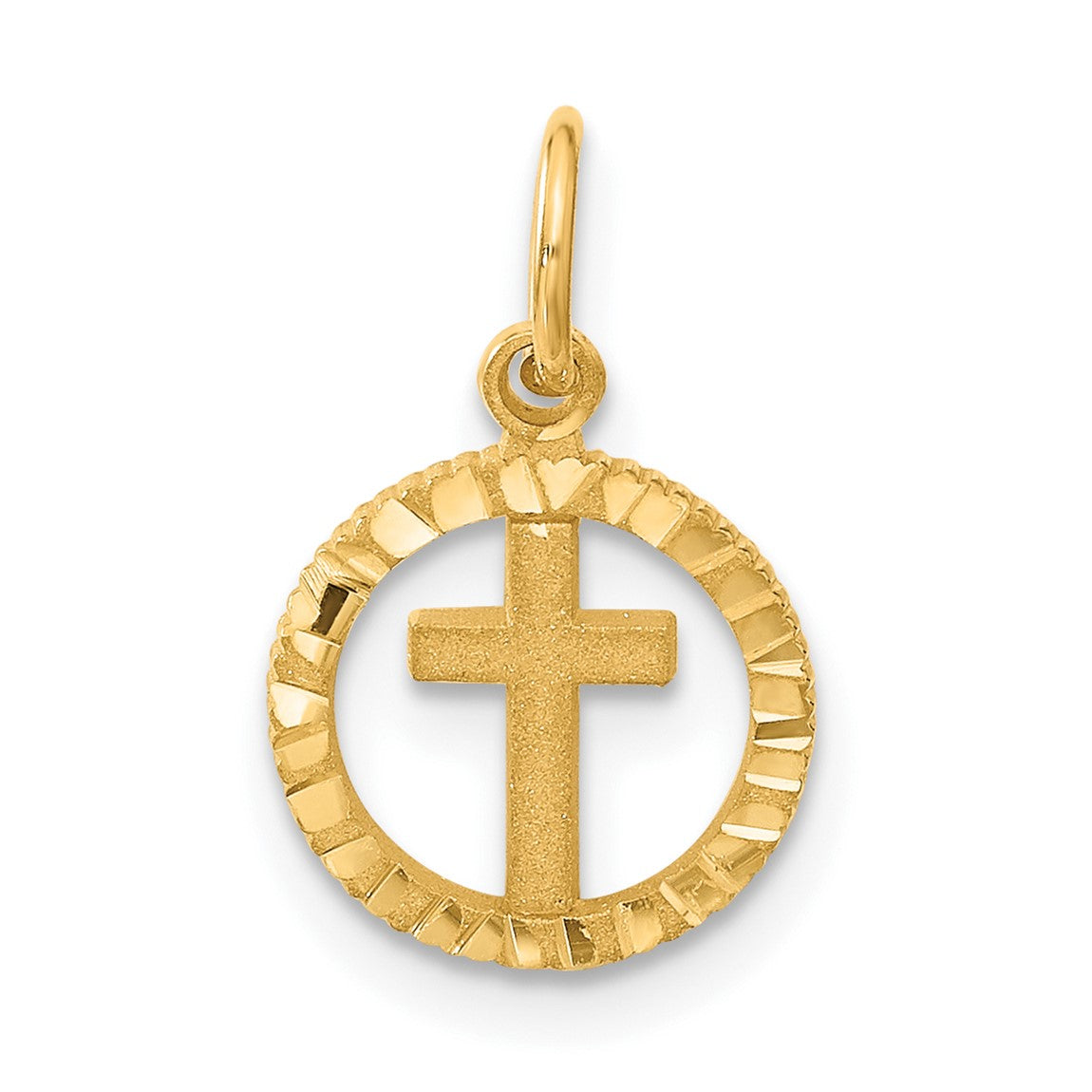 14k Yellow Gold Eternal Life Cross in Circle Charm C1314