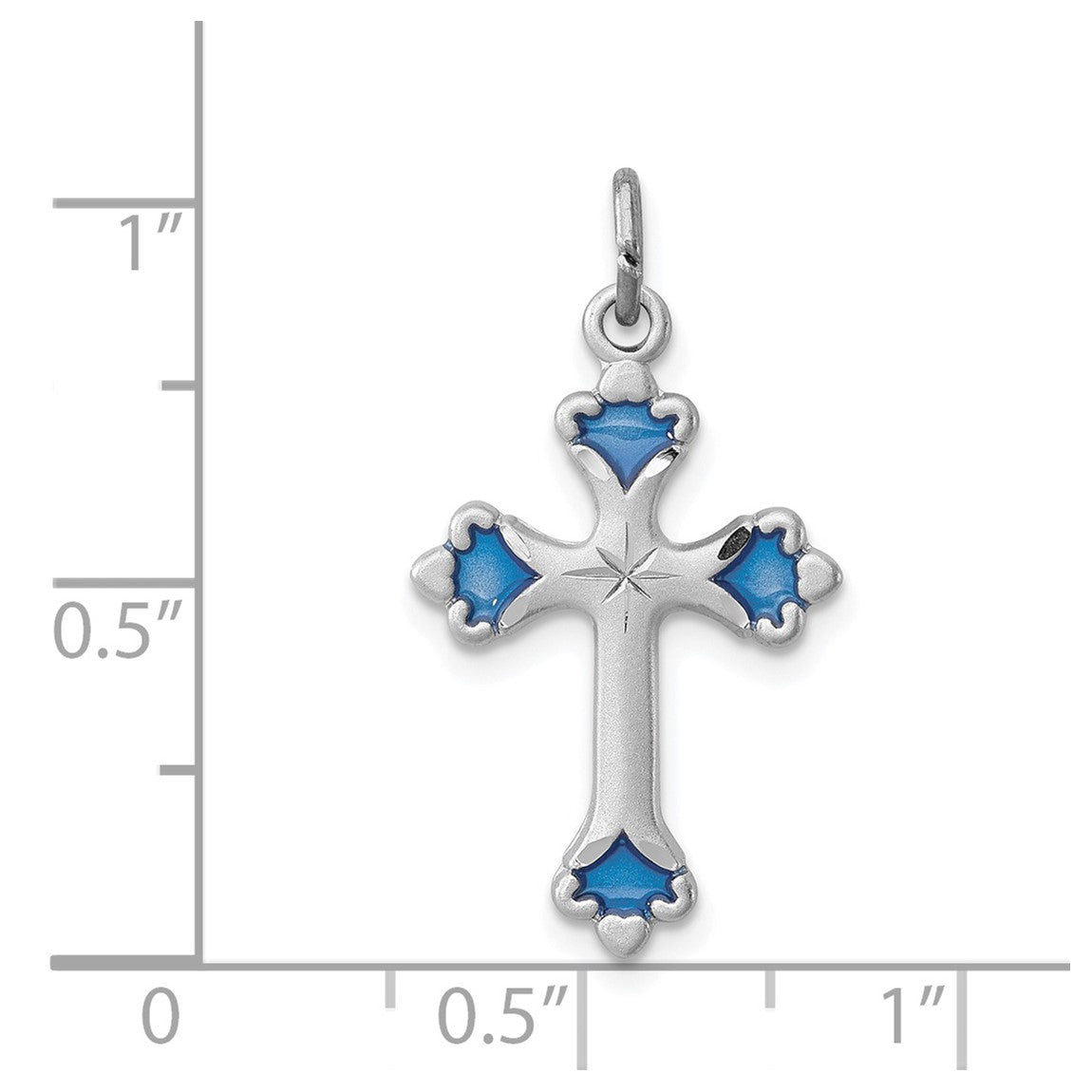 Sterling Silver Rhodium-plated Blue Enameled Budded Cross Charm