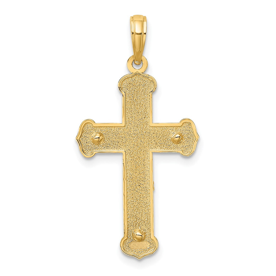 10k Yellow Gold with Rhodium-Plated Engraved Crucifix Pendant 10k9215
