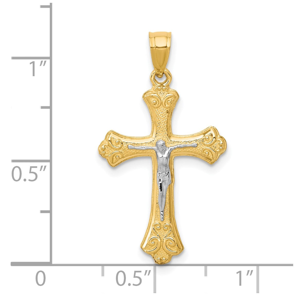 10k Yellow Gold with Rhodium-Plating Fleur de Lis Crucifix Pendant 10C1067