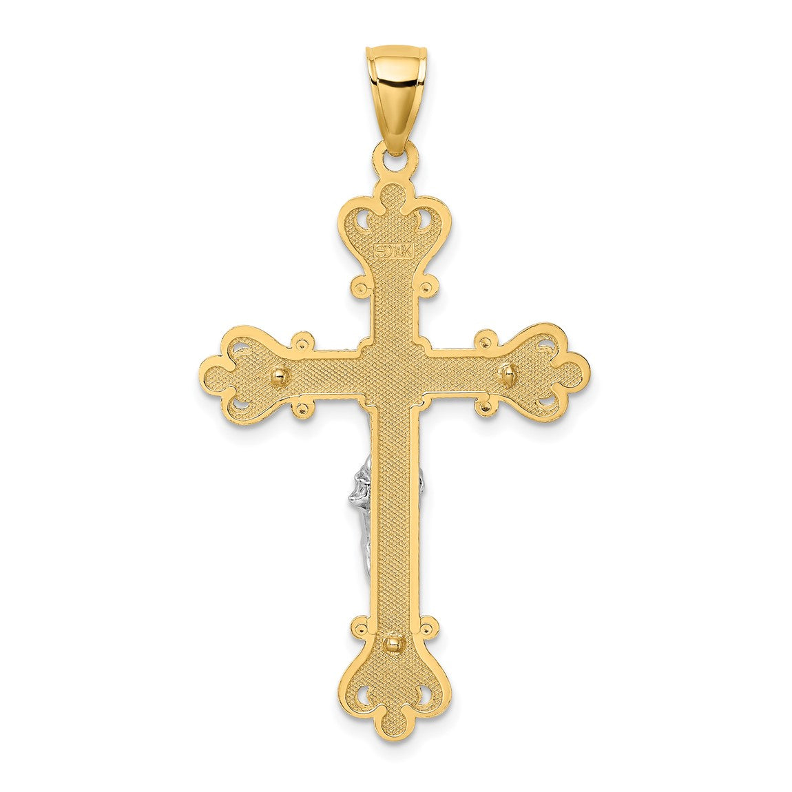 14k Gold with Rhodium-Plating Engraved Crucifix Pendant K9220