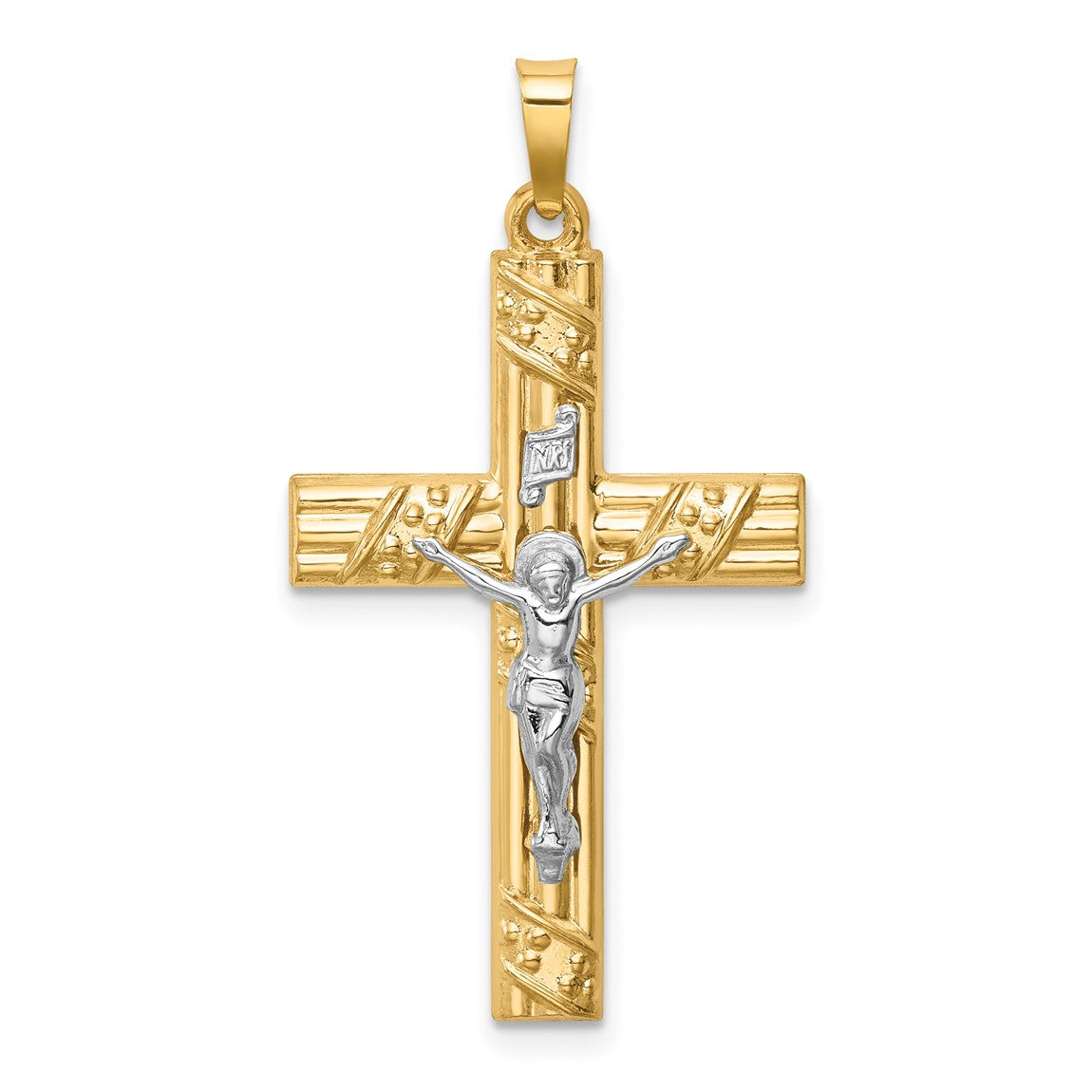 14k Two-tone Gold Hollow Polished Textured & Striped Latin Crucifix Pendant