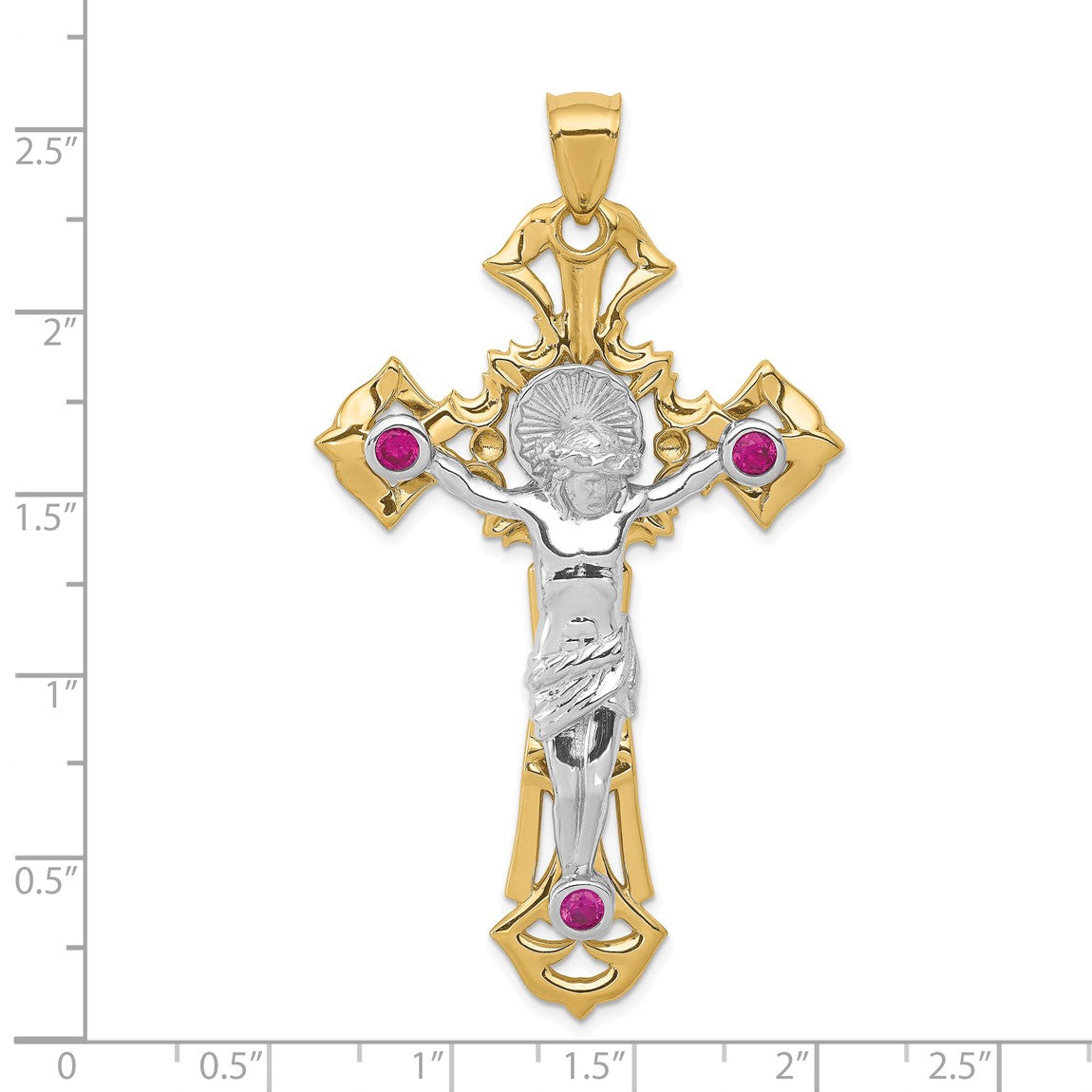 14k Two-tone Gold Polished with Red CZs Crucifix Pendant C2034