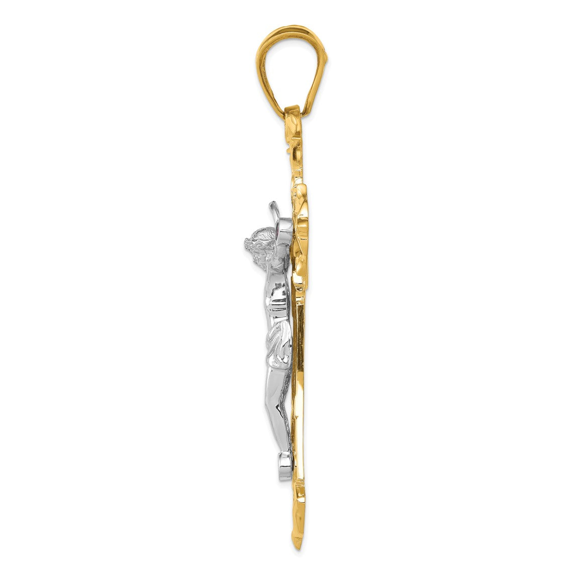 14k Two-tone Gold Polished with Red CZs Crucifix Pendant C2035