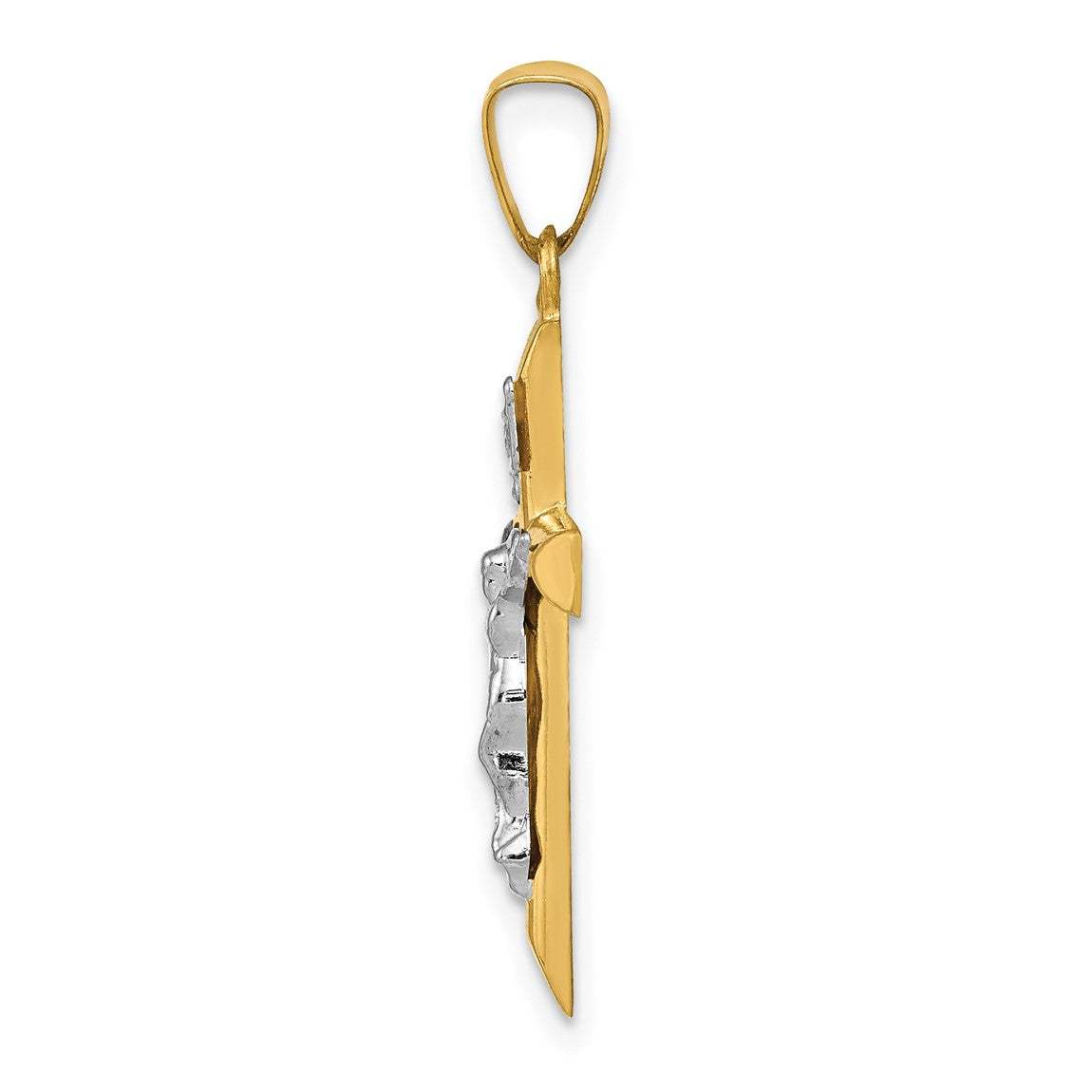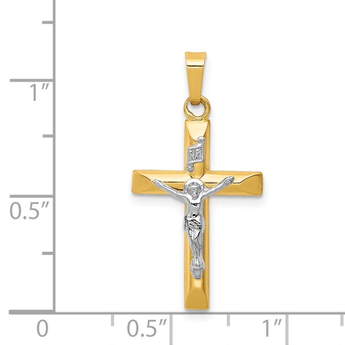 14k Yellow and White Gold Inri Hollow Latin Crucifix Pendant XR293