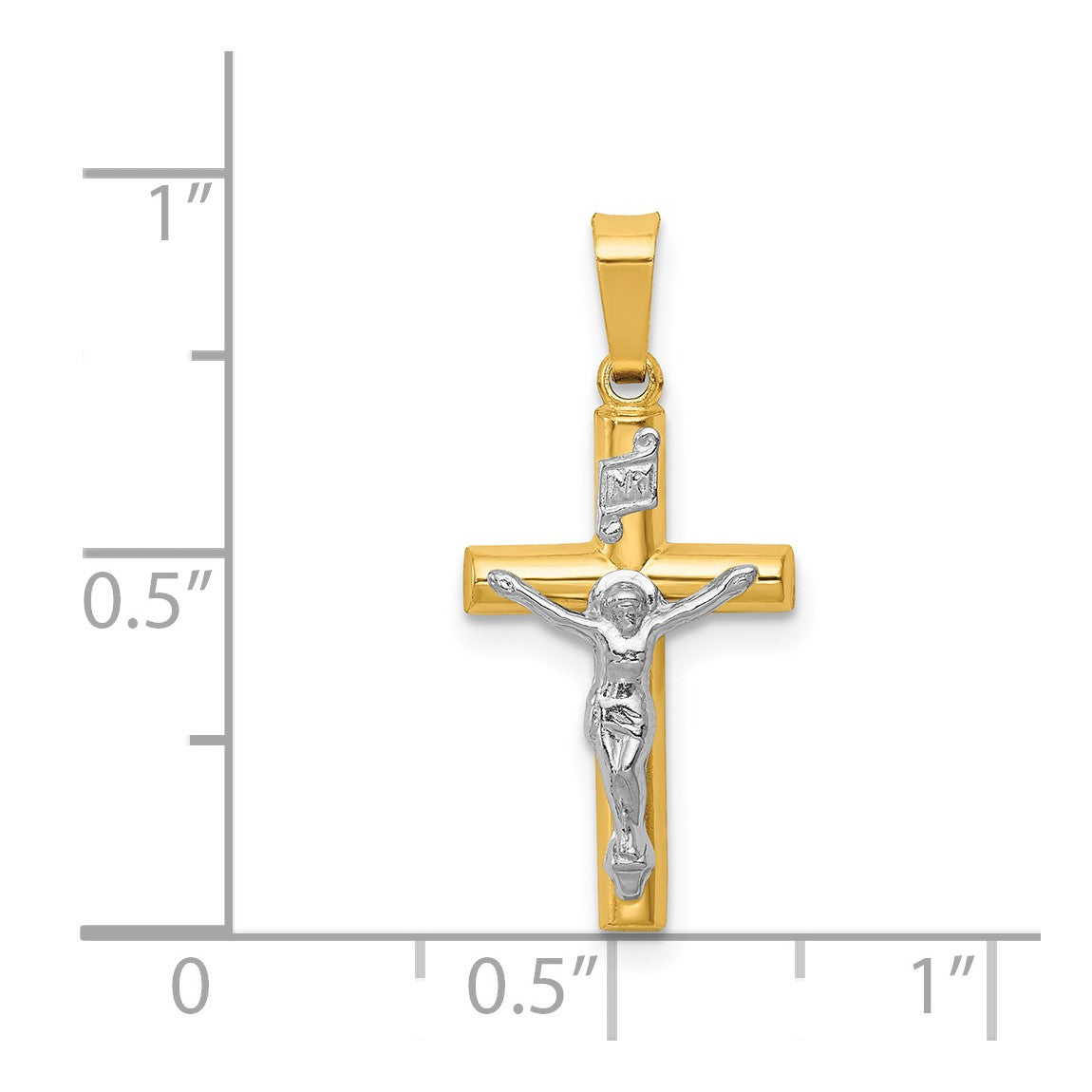 14k Yellow and White Gold Inri Hollow Latin Crucifix Pendant XR295