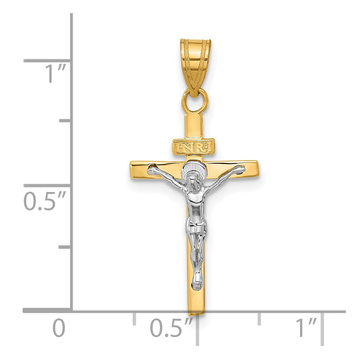 14k Yellow and White Gold Inri Latin Crucifix Pendant D3669