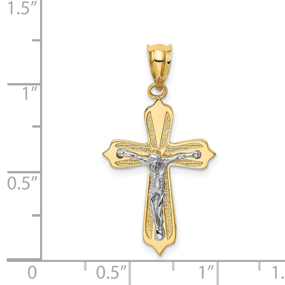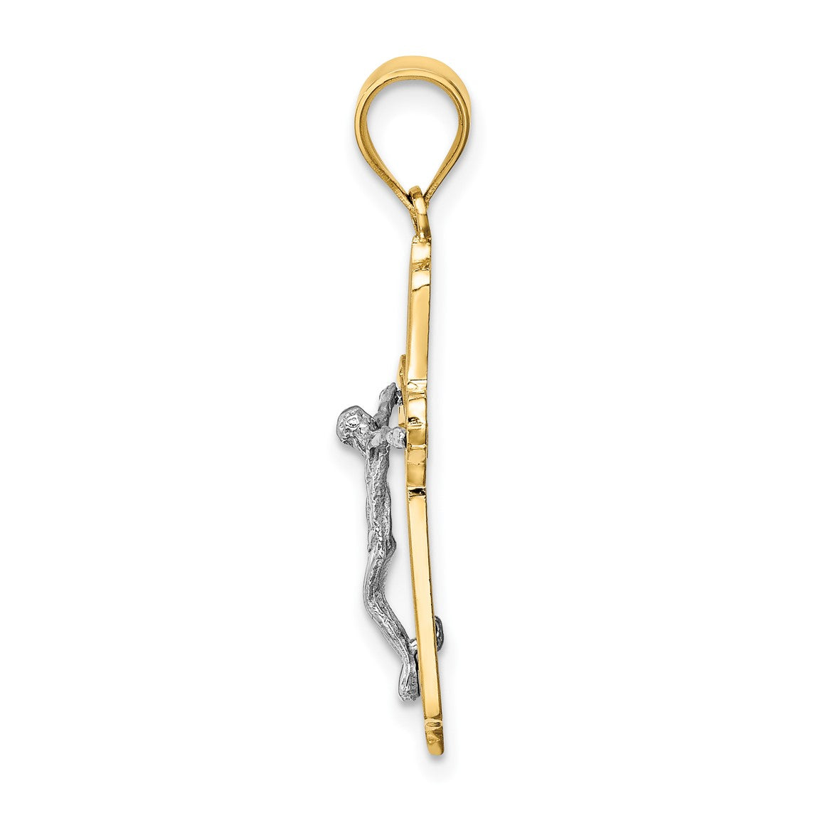 14k Yellow Gold and Rhodium Crucifix Pendant