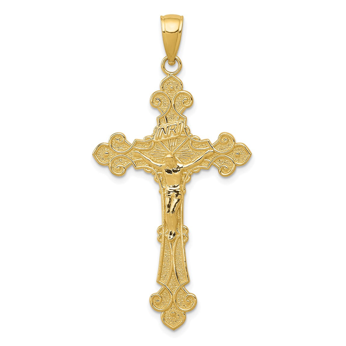 14k Yellow Gold Polished Textured Inri Crucifix Fleur De Lis Pendant