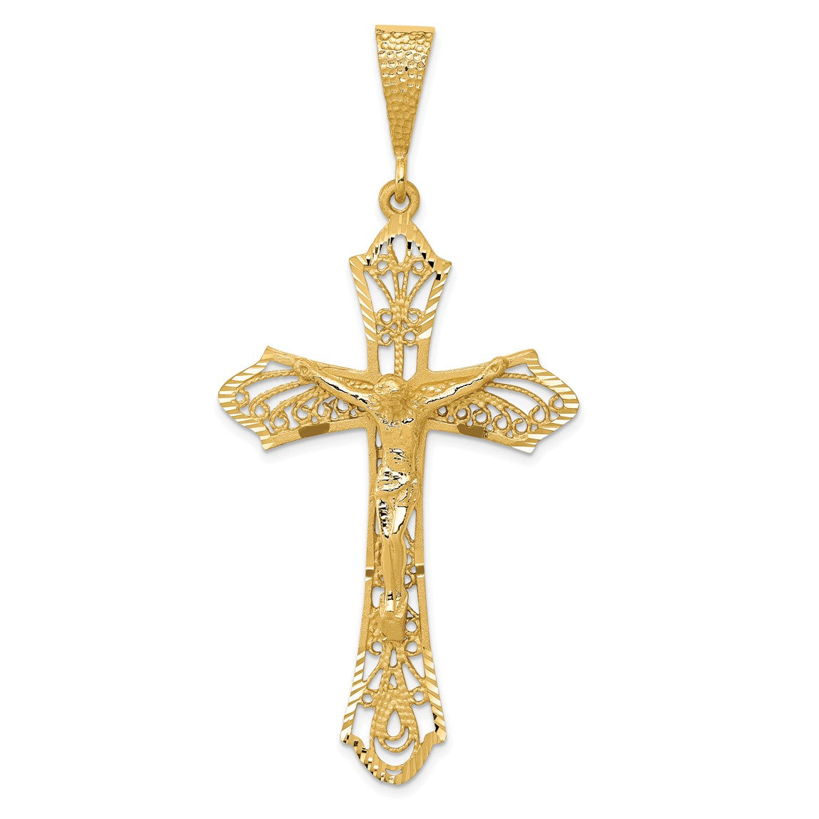 14k Yellow Gold Satin and Diamond-Cut Crucifix Pendant