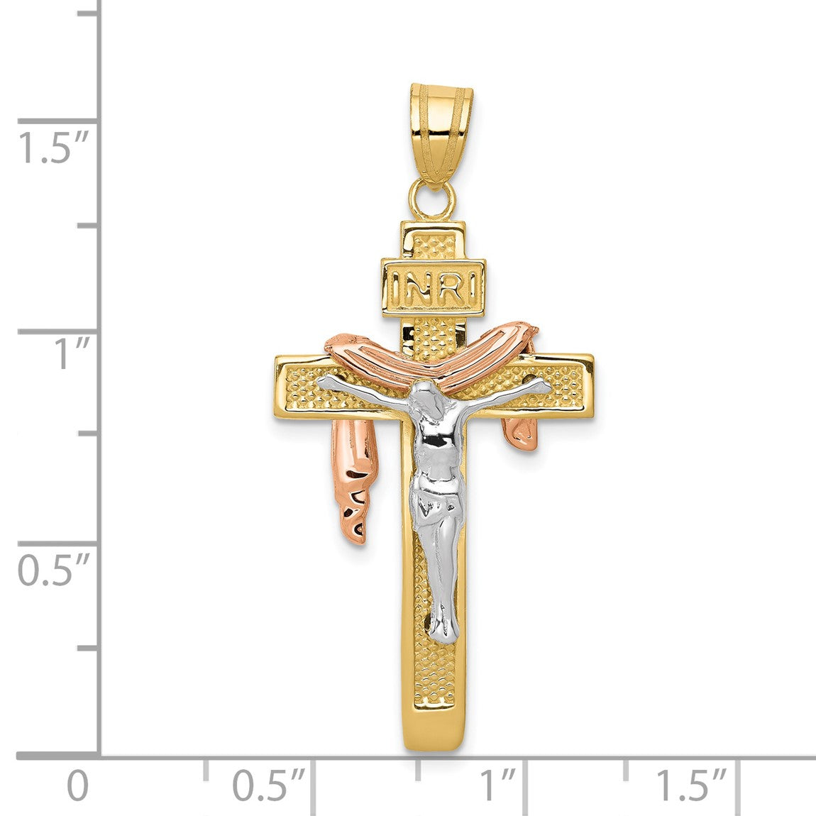 14k Yellow Gold Tri-Color Large Draped Inri Crucifix Pendant